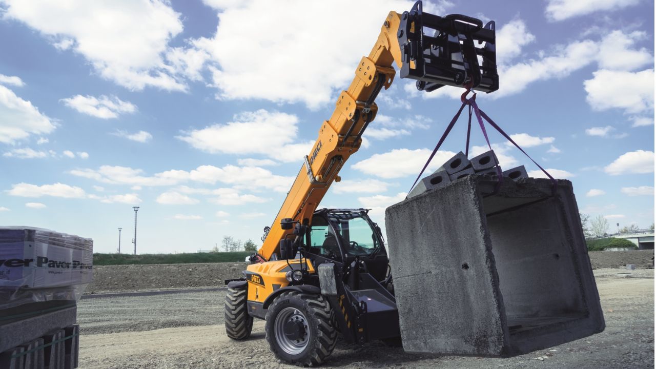 Cómoda cabina con amortiguación 360°, diseñada por «Giugiaro» con accionamiento del brazo telescópico desde un solo joystick. Cuenta con cabina ROPS/FOPS, tercera función en el brazo con caudal de bomba de 102 l/m y motor de 74 HP sin Ad-Blue.